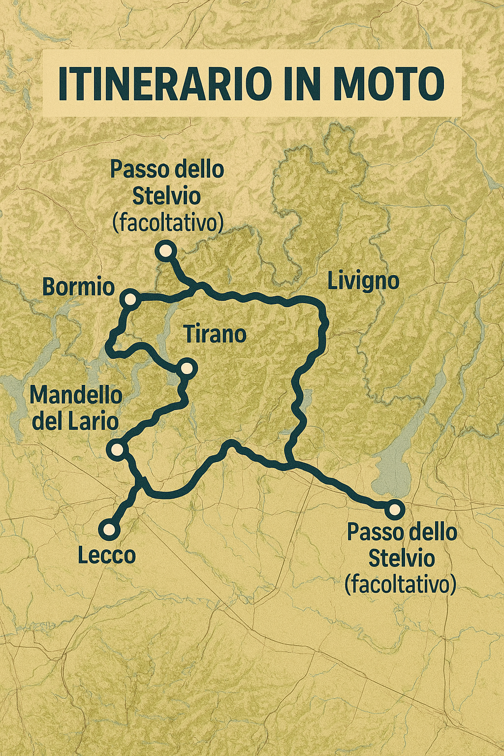 - Passo dello Stelvio (facoltativo): se desideri allungare l’itinerario e affrontare una vera leggenda, i 48 tornanti leggendari dello Stelvio ti aspettano. Una sfida emozionante e un’esperienza adrenalinica per ogni biker che vuole mettere alla prova le proprie abilità di guida in alta quota.