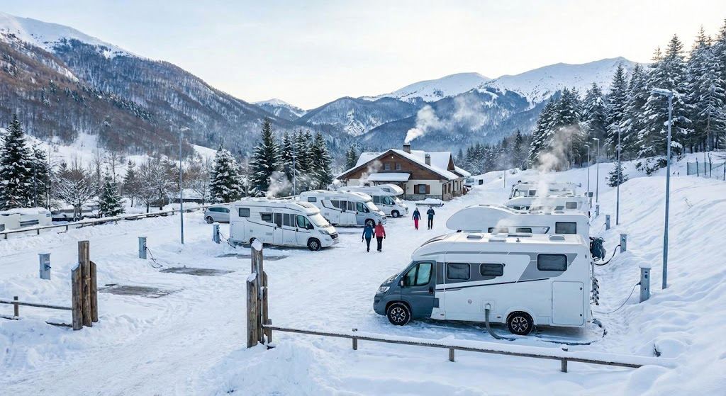 ● Snow Village Roccaraso: Area attrezzata completa con elettricità, scarico e Wi-Fi